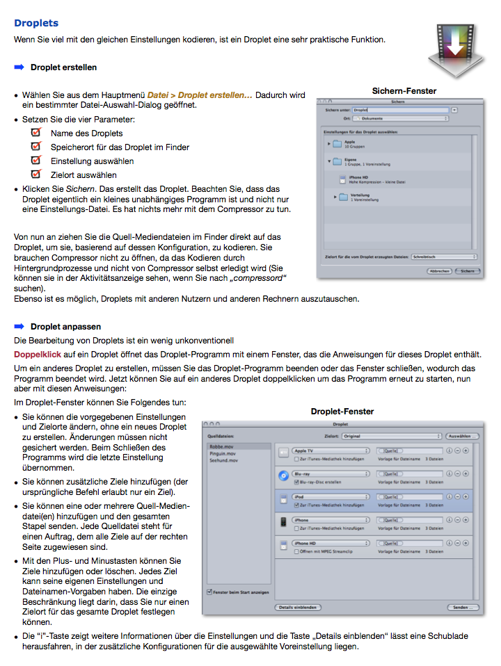"Compressor 4 - So funktioniert's" erklärt Apple's Compressor Software mit reichhaltigen Illustrationen die man sonst nirgendwo findet in den offiziellen Anleitungen und Büchern. Das Buch hilft ihnen in eingänglicher Weise die Konzepte und Arbeitsvorgänge in Compressor 4 zu verstehen und meistern.