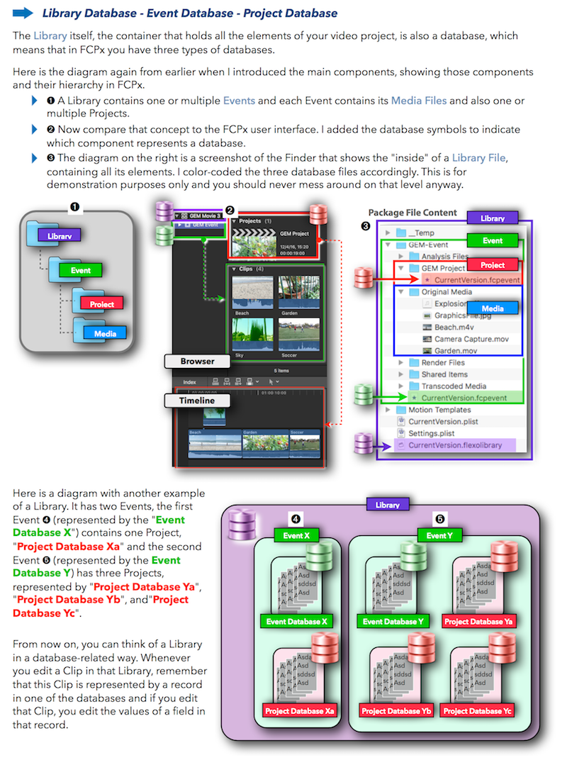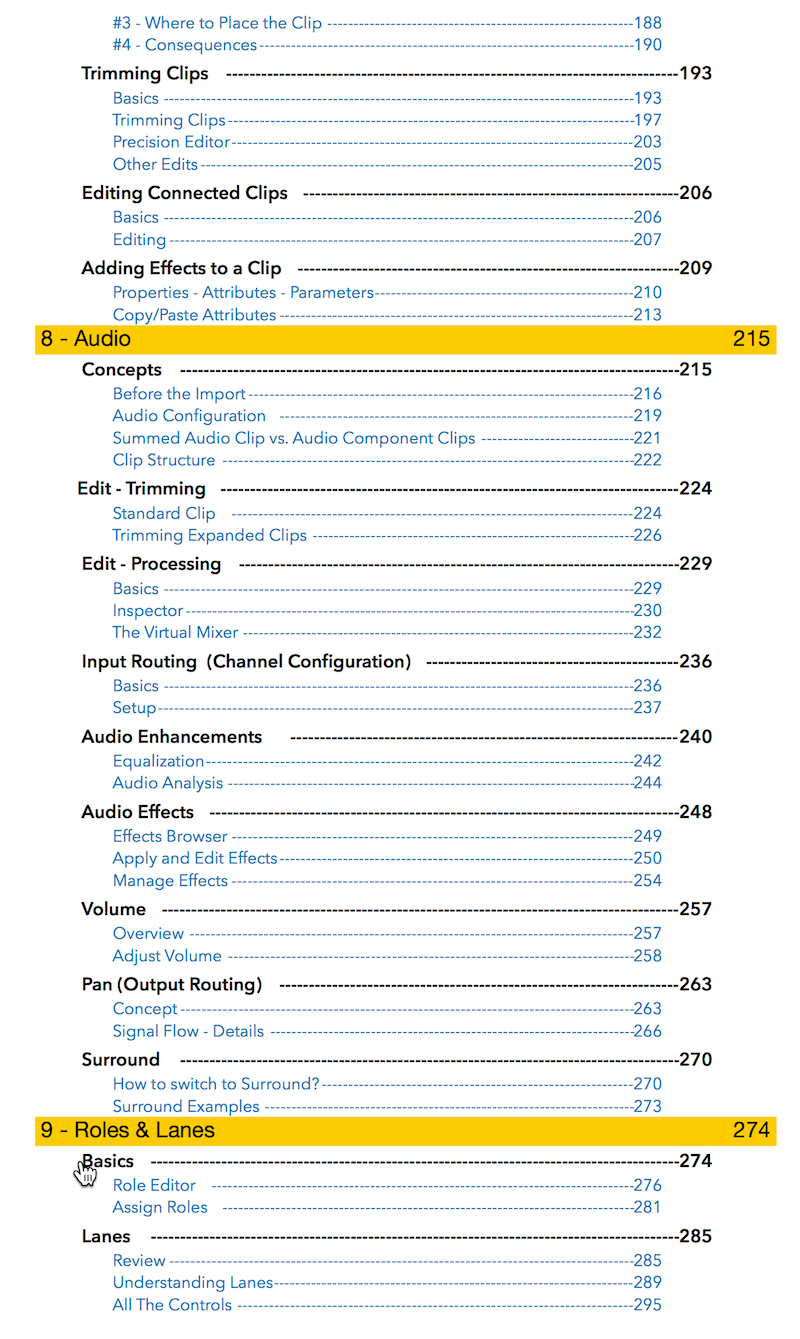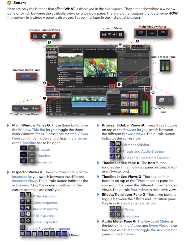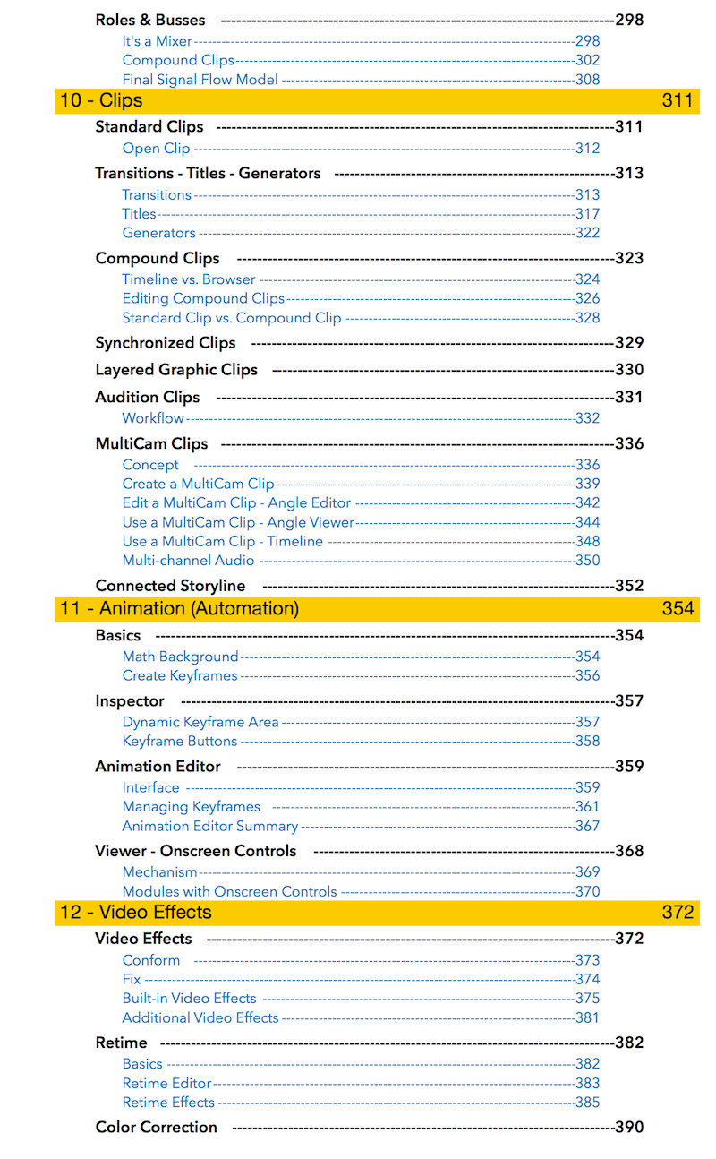 "Final Cut Pro X 10.4 - How it Works" (revised for v10.4.3) explains Final Cut Pro X in great details with lots of graphics and diagrams that are not found in any other publication or videos. In-depth explanations of all the features like Roles, Lanes, Color Correction, Captions, and 360° Video plus unique illustrations on how metadata-based audio mixing works in Final Cut Pro X.