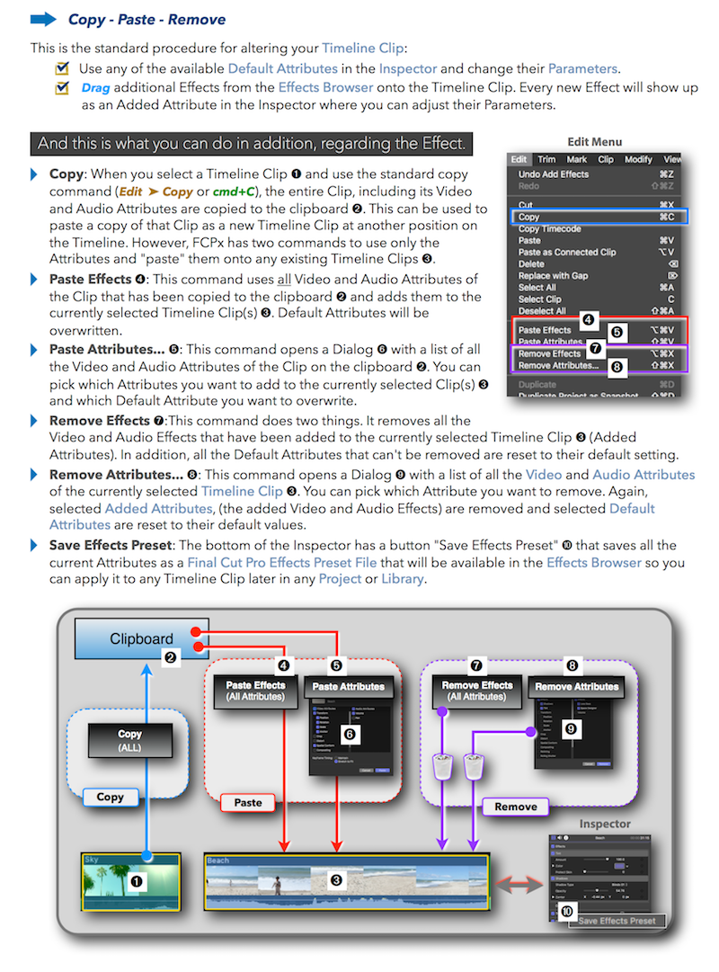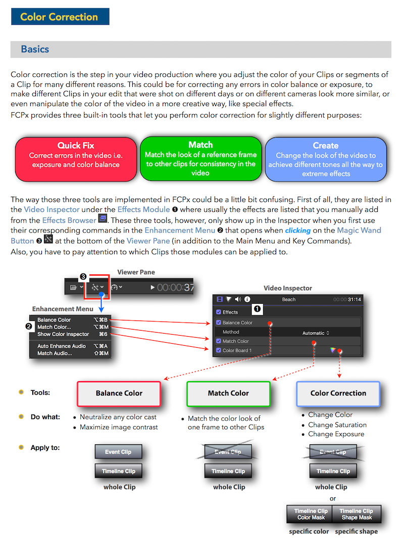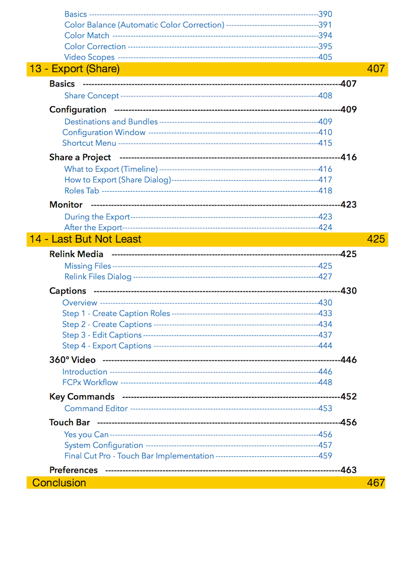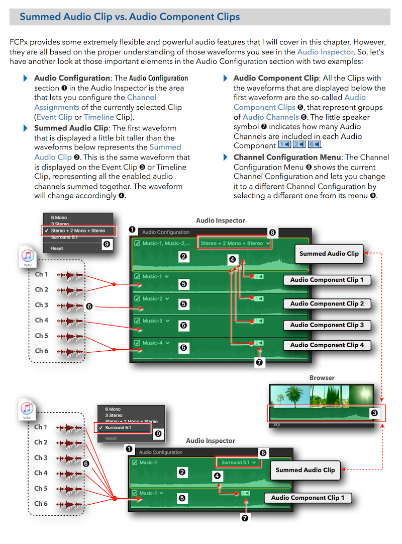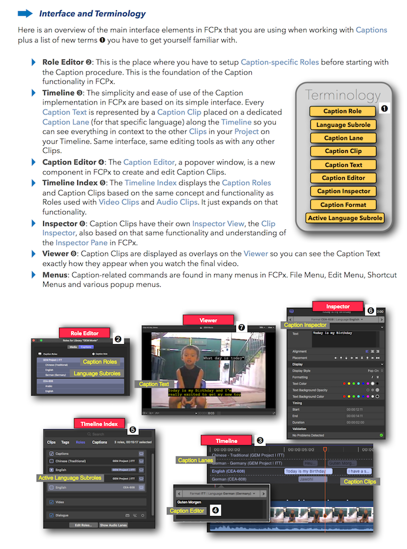 "Final Cut Pro X 10.4 - How it Works" (revised for v10.4.3) explains Final Cut Pro X in great details with lots of graphics and diagrams that are not found in any other publication or videos. In-depth explanations of all the features like Roles, Lanes, Color Correction, Captions, and 360° Video plus unique illustrations on how metadata-based audio mixing works in Final Cut Pro X.