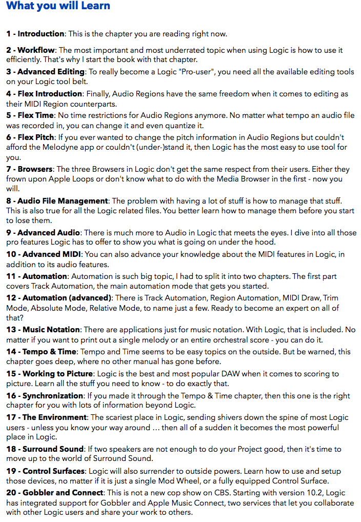 "Logic Pro X - The Details" is the follow-up book of "Logic Pro X - How it Works". It explains all the remaining features in Logic Pro X with more rich illustrations and diagrams that are not found anywhere else. This is the first time that even beginners and intermediate Logic users can explore the more advanced features in Logic with that easy to understand, visual approach of this manual.